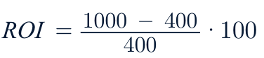 Thus the ROI is 150% percent, meaning that for every dollar spent, you get $1.50 in profit (don’t confuse this with ROAS, which gives you revenue rather than profit).